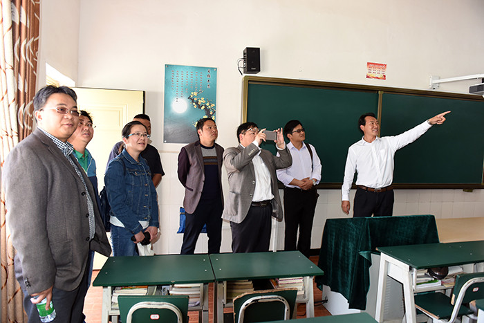 考察團(tuán)一行首先參觀了學(xué)校的孔子雕像、辦公樓、教學(xué)樓、食堂、學(xué)生宿舍、監(jiān)控等硬件設(shè)施,并在多媒體教室觀看了學(xué)校教學(xué)活動(dòng)短片。