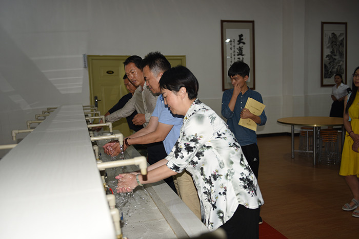 付處長首先參觀了學校辦公樓,查看了學校指揮中心的監(jiān)控安防設備。然后進入學校食堂餐廳、學生宿舍、曬衣房、淋浴室等硬件設施逐一進行查看。參觀過程中,付處長、王梅副市長還親自測試了學校的24小時熱水供應系統(tǒng)設備。付處長高度肯定了學校的工作,他講到:“好孩子學校的各項硬件設施設備暨前衛(wèi)又安全,管理精細化,教師們工作認真負責,辦學成果非常顯著。要是我們很多公辦學校都能這樣辦,那該多好!”