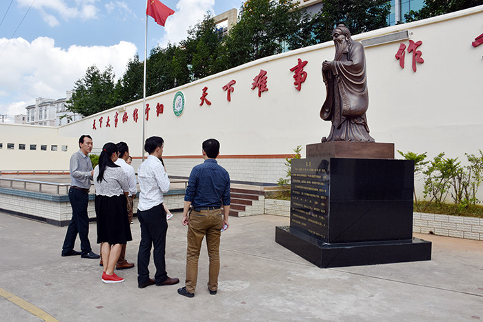 在學(xué)校校長的陪同下,楊主任一行首先參觀了學(xué)校辦公樓、監(jiān)控設(shè)備、食堂餐廳、孔子雕像、學(xué)生宿舍等硬件設(shè)施;隨后,在多媒體教室觀看了教學(xué)活動(dòng)短片;最后,在辦公室就學(xué)校的法律制度、法律事務(wù)開展?fàn)顟B(tài)進(jìn)行了深入交流。