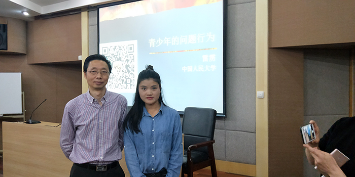 學(xué)校法學(xué)教師李月與中國人民大學(xué)心理學(xué)系教授雷靂(左一)合影留念