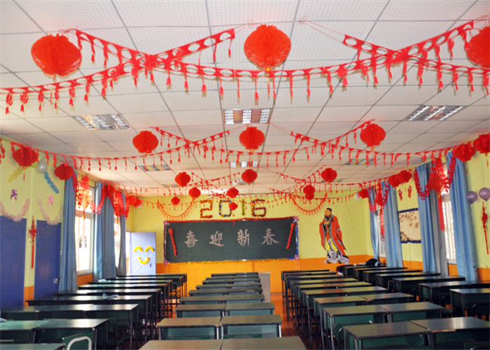 2016年2月6日、7日,為迎接猴年新春的到來(lái),我校停課開(kāi)始籌備新年的各項(xiàng)準(zhǔn)備工作。一大早,師生們就對(duì)學(xué)校進(jìn)行全面大掃除,隨后著手布置校園。老師和孩子們用彩球、彩帶、彩燈、紅燈籠、剪紙、春聯(lián)等“春節(jié)標(biāo)配飾品”裝束著校園,經(jīng)過(guò)一天半的忙碌,校園內(nèi)張燈結(jié)彩,充滿(mǎn)了濃濃的“年味兒”!大家都在以一顆翹首以盼的心等待春節(jié)的到來(lái)。
