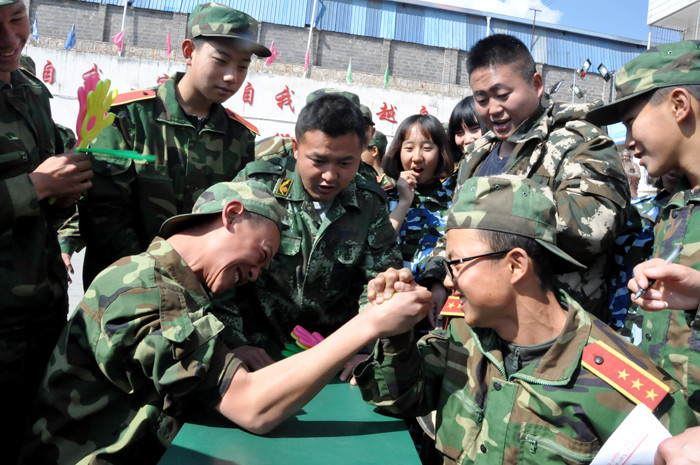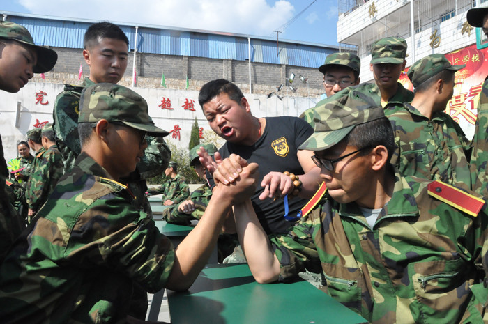 同學們早早就在操場上擺好桌椅等待比賽,隨著一聲哨響,比賽正式開始了。同學們摩拳擦掌地坐到了指定位置,開始“戰(zhàn)斗”起來,每位選手都緊緊地握住對方的手,卯足了勁往自己這邊扳。有的由于力量懸殊,很快敗下陣來;有的趁對方不備,猛往自己懷中一壓,還沒等對方反應過來,手已經(jīng)被壓在桌上了;有的相持不下,鼓著腮、瞪著眼,臉漲得像個紅蘋果;有的不甘示弱,拼命想把對方的手壓下去,無奈還是沒有還手之力。場上的啦啦隊員,有的在揮手喊加油,有的急得直跺腳,有的不停地說道“不行,不行,他太強了!”操場上可謂是一番熱鬧至極的景象。
