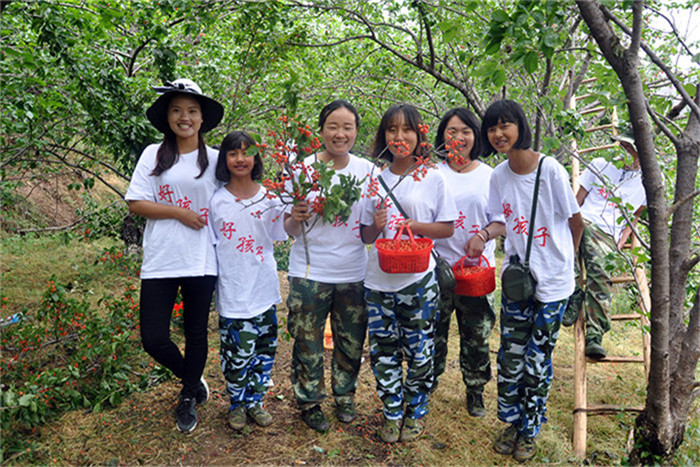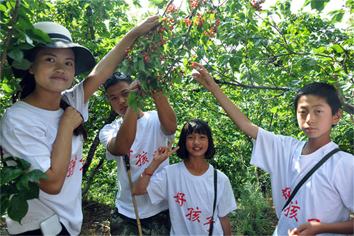 剛出校門,同學們就興奮不已,到目的地看到漫山遍野的櫻桃樹,紅紅的櫻桃點綴在其中,在陽光的照射下,閃著誘人的光,對采摘更是大感興趣,迫不及待的跑到樹下邊吃邊摘。園里不時有同學說道:哇,這個真大真甜!一定要多摘些回去給同學們也嘗一嘗......你看,有的奮力踮起腳尖,吃力地將樹枝壓彎,將摘下的櫻桃放進小框里;有的巧借竹鉤,挑選著圓潤飽滿的;有的干脆用梯子爬到高處,摘著最大最紅的......整個櫻桃園里,不時傳來了同學們陣陣歡快的笑聲。