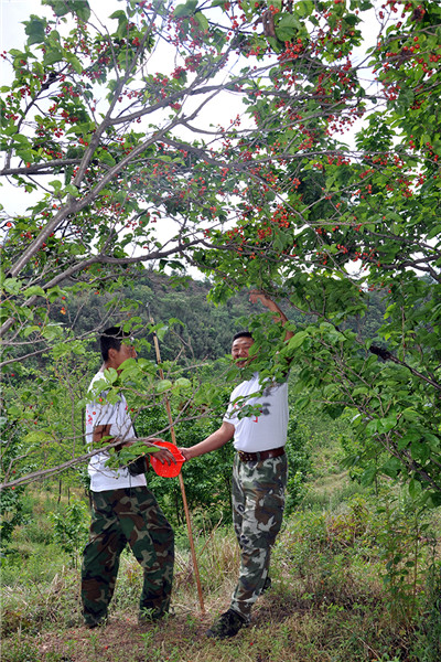 2016年5月4日上午,我校副校長兼總教官毛積敏帶領(lǐng)部分師生到安寧青龍界牌村櫻桃園為學生采摘櫻桃。