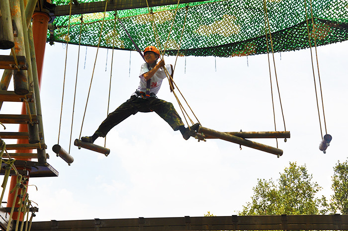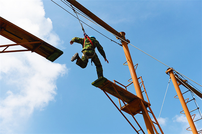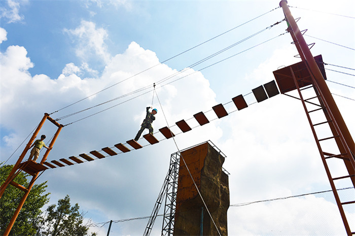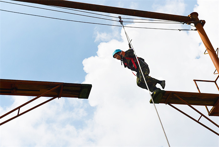 拓展活動(dòng)在教練們的耐心講解和簡(jiǎn)短的趣味游戲熱身中拉開了帷幕。隨后,同學(xué)們陸續(xù)挑戰(zhàn)了天梯、高空斷橋、探險(xiǎn)樂園等30余個(gè)項(xiàng)目。