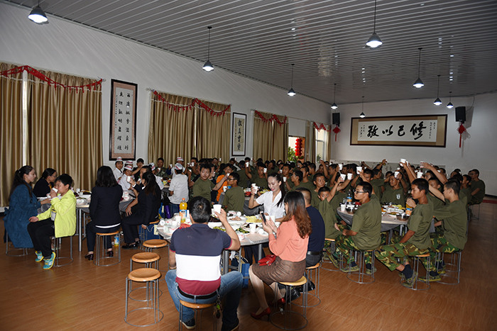 全體師生向孔子像行完鞠躬禮后,進(jìn)入食堂,準(zhǔn)備享用美味。副校長毛積敏擔(dān)任了本次活動的主持人,首先給孩子們介紹了中秋節(jié)的來歷及習(xí)俗,隨后魯校長作了中秋致辭,并陪著大家一起共進(jìn)晚餐,師生們紛紛舉杯相互表達(dá)節(jié)日祝福。為感謝幾年如一日、無怨無悔扎根于學(xué)校的老師們,魯校長精心準(zhǔn)備,給全體教職工發(fā)放了精美禮品進(jìn)行慰問。席間,孩子們迫不及待、自告奮勇上臺自我介紹或表演節(jié)目,把晚餐的氣氛推向了高潮。