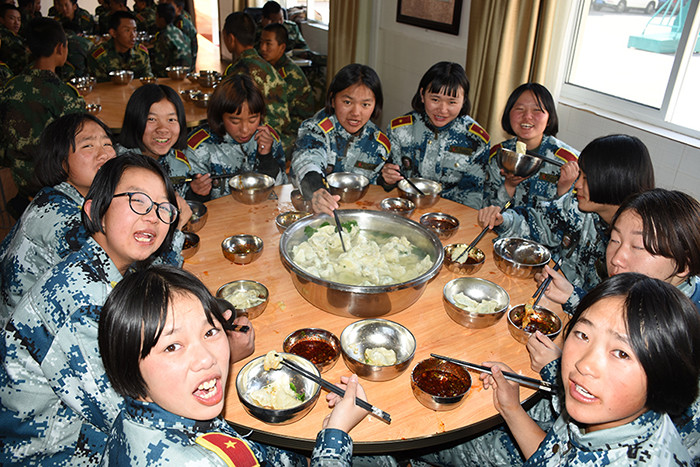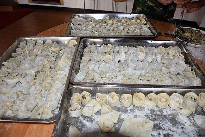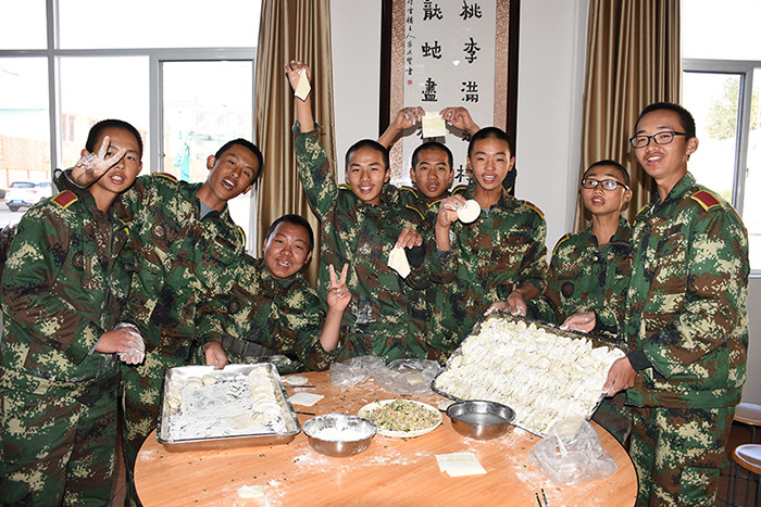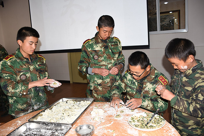 一大早,孩子們便欣喜若狂地來到食堂,迫不及待地想要大顯身手。副總教官王濤給孩子們講解了冬至的來歷和習(xí)俗后,各班主任和孩子們就一起開心地包起了餃子。你看,有的包、有的捏、有的說、有的笑、有的商討、有的相互切磋技巧......老師們一會(huì)兒做“督導(dǎo)員”,一會(huì)兒捋起袖子加入到包餃子的強(qiáng)大陣營當(dāng)中,師生同樂的暖意沁人心脾。孩子們包出來的餃子花樣繁多、千姿百態(tài),有敦實(shí)厚重的,有別致精巧的,還有四不像的?粗槐P盤別出心裁但都裹滿愛意的餃子,看著一張張掛滿面粉但都笑容燦爛的面容,吃著香溢滿口的餃子,別樣的冬至喜慶連連。