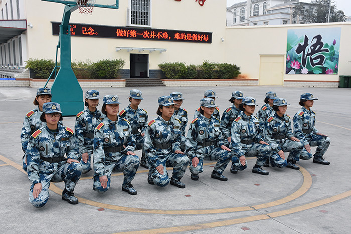 在基本的隊列表演完畢后, 伴著激揚的旋律,女生方隊進(jìn)行了《父親》手語操和女兵操表演。看!她們一個個精神抖擻,柔中帶剛,舉手投足釋放著青春的活力,贏得了師生陣陣熱烈的掌聲。伴隨著震耳欲聾的吶喊聲,男生方隊出場了!他們個個生龍活虎,一招一式,剛勁有力,為我們完整地展示了第二三套擒敵拳、基本手形步形、馬步?jīng)_拳。壓軸出場的教官摔擒表演、應(yīng)急棍術(shù)更是淋漓盡致地展現(xiàn)了當(dāng)代軍人的風(fēng)采。
