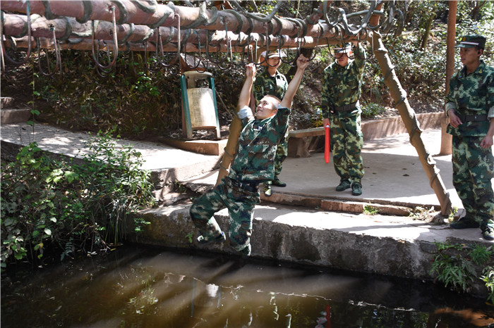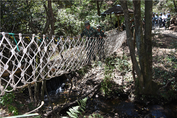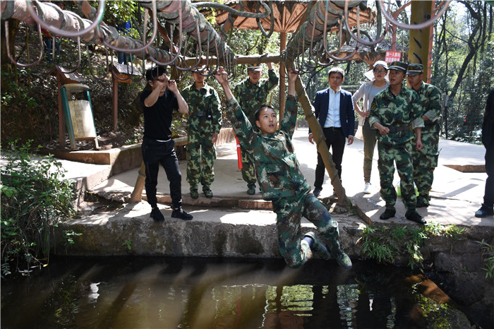 在老師們的帶領(lǐng)下,大家沿著山間的石板路,首先到達(dá)了第一個(gè)項(xiàng)目挑戰(zhàn)點(diǎn)——水上蕩繩(也叫笑料陷阱),孩子們?cè)诶蠋煹哪托闹v解和示范后,相繼進(jìn)行了挑戰(zhàn)。有的輕松自如,動(dòng)作規(guī)范;有的驚險(xiǎn)蕩過(guò),虛驚一場(chǎng);有的蜻蜓點(diǎn)水,老師巧妙護(hù)住。在結(jié)束第一個(gè)項(xiàng)目后,緊接著挑戰(zhàn)了“臂力渡河”,這個(gè)項(xiàng)目難度系數(shù)增大,為了安全起見(jiàn),老師下水保護(hù),挑戰(zhàn)成功的同學(xué)一臉興奮,挑戰(zhàn)不成功的也不氣餒,大聲說(shuō)著要再來(lái)一次。現(xiàn)場(chǎng)加油聲、歡呼聲此起彼伏,氣氛格外熱烈。隨后進(jìn)行的是“叢林穿越”,孩子們分為兩列縱隊(duì)興高采烈地沿溪而上,一條長(zhǎng)龍穿梭在山谷之中,和煦的陽(yáng)光透過(guò)稠密的樹(shù)葉灑落下來(lái),點(diǎn)點(diǎn)金色的光斑倔強(qiáng)地映照在孩子們喜笑顏開(kāi)的臉上,清脆的歡笑聲在山谷間回蕩。大家邊走邊在自己喜歡的地方,擺出不同的姿勢(shì),和小伙伴們留下最珍貴的回憶。清幽的山谷,呈現(xiàn)出一幅人與自熱和諧相處的畫(huà)面。