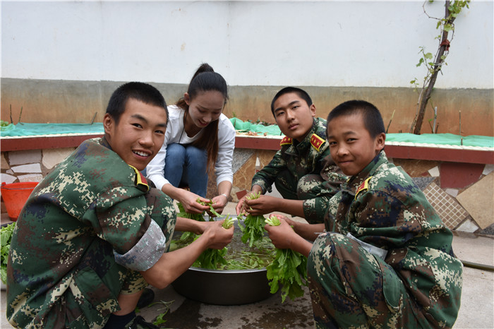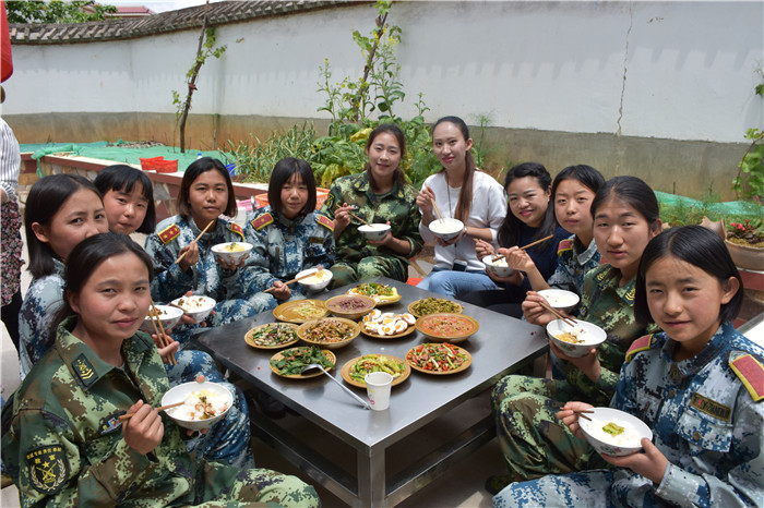 到了吃飯時間,同學(xué)們來到櫻桃園附近的農(nóng)家院,熱心的老板正在準(zhǔn)備著豐盛的午餐,同學(xué)們很懂事,都主動幫著廚師們?nèi)ヌ锢镎、洗菜。片刻間,一盤盤美味佳肴就上桌了,孩子們吃得津津有味,大呼過癮。