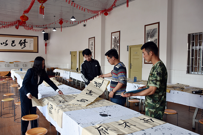 揮毫抒壯志,潑墨顯精神。以入校五個(gè)月作為學(xué)段劃分的分水嶺,分成兩個(gè)大組進(jìn)行比拼;顒(dòng)現(xiàn)場(chǎng),新生書寫有的雖然略顯稚嫩,但專注度和用心度一點(diǎn)也不輸給老生。只見孩子們揮毫潑墨,一絲不茍,盡其所能地展示著自己的書法才能。歷經(jīng)一小時(shí)的精彩角逐,孩子們留下了“志存高遠(yuǎn)”、“天道酬勤”“道法自然”、“見賢思齊”、“靜以修身”、 “登黃鶴樓” “陋室銘”等作品,一點(diǎn)一橫足見水平,一撇一捺盡顯風(fēng)骨,整體凝練樸茂,落款飄逸空靈,贏得了老師們的陣陣好評(píng)。最后,經(jīng)過評(píng)委老師們公正、公平、公開的評(píng)分,分別評(píng)出了一二三等獎(jiǎng)。