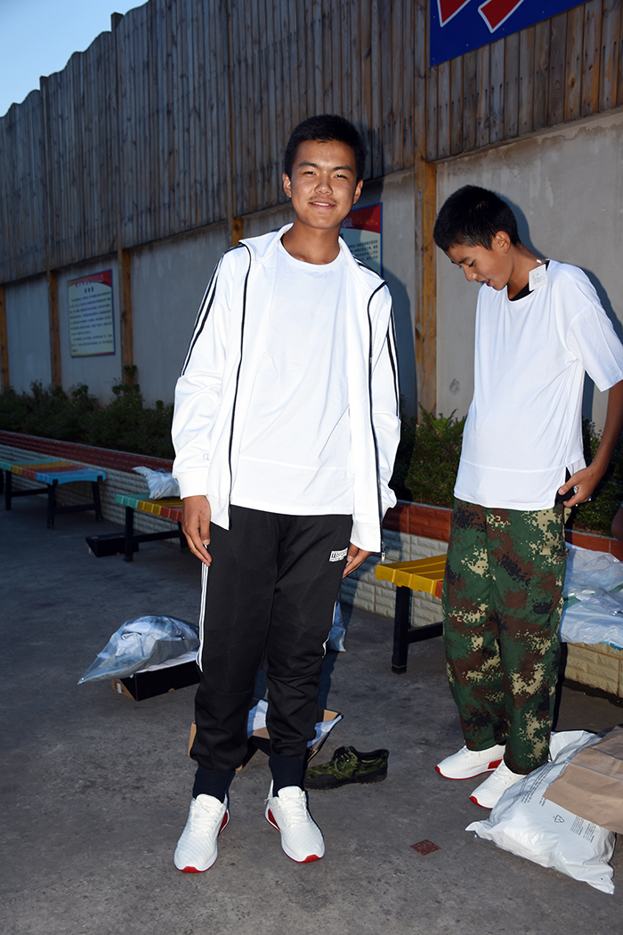 領(lǐng)到新裝的孩子非常興奮,不時(shí)說(shuō)著“真好看”、“好喜歡”、“好漂亮”、 “太幸福了”之類的話語(yǔ),并迫不及待地?fù)Q上漂亮的校服,站在鏡子面前,左照照、右照照,是那么合身、那么帥氣、那么有朝氣。你瞧,潔白的T恤和外套,配上黑色的褲子,加上白色運(yùn)動(dòng)鞋,既莊重又活潑,既樸素又大方。我校使用的迷彩服和運(yùn)動(dòng)服作為指定服裝,相得益彰,一個(gè)嚴(yán)肅,一個(gè)休閑,正好符合學(xué)校的“嚴(yán)管理,善對(duì)待”的教學(xué)理念,更體現(xiàn)了學(xué)校的人文關(guān)懷。