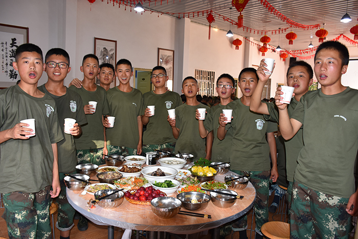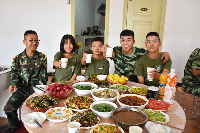 傍晚,一桌桌色香味美的飯菜全部就緒,粽子也蒸熟了,同學(xué)們興高采烈地一盤一盤端上桌,大家圍坐在一起,看著自己的勞動(dòng)果實(shí)說著、笑著!過一會(huì)兒,魯植校長發(fā)表了節(jié)日祝賀和熱情洋溢的講話:“今天的端午不一樣,希望孩子們在沒有家人陪伴的節(jié)日里,能夠更深刻地認(rèn)識(shí)到親人的重要性;在沒有踏青旅游的節(jié)日里,能夠用足夠的時(shí)間改變自己,在學(xué)校完成學(xué)習(xí)目標(biāo),追求自己的人生理想……”聽到校長的祝愿,同學(xué)們掌聲不斷。開席后,孩子們吃著豐盛的晚餐、品嘗著獨(dú)特香味的粽子,不時(shí)向老師道祝福,和同學(xué)相共勉。在攝像機(jī)的鏡頭下,孩子們還爭先恐后地向遠(yuǎn)方的爸媽送祝福,希望他們端午安康!