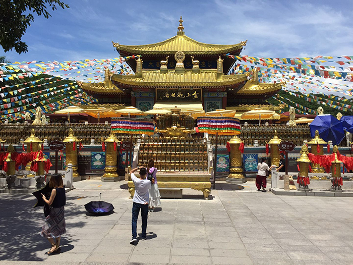 南海觀音三尊化一體,從每個(gè)面看上去,都可以看到一尊觀音像,分別是持篋觀音,意味著觀眾生之機(jī),啟眾生智慧;持蓮觀音,寓意出淤泥而不染,根莖通心,象征“心寄眾生,三無(wú)差別”;持珠觀音,意味著徹底擺脫煩惱和束縛,達(dá)到大自由的境界。在這吉祥福澤清凈的佛教圣地,我們一路走,一路拜,一路虔誠(chéng)地祈禱......