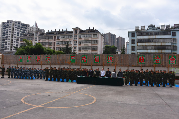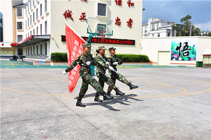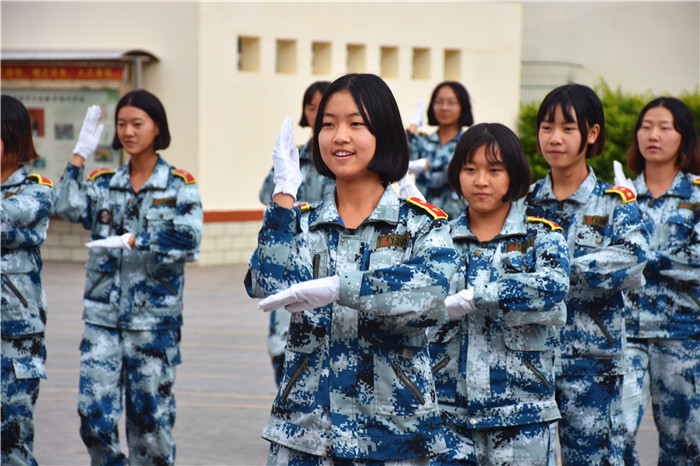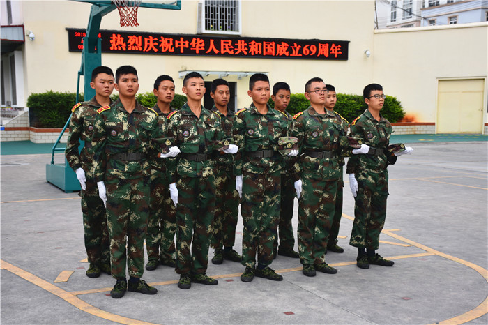 本次軍訓匯報表演既是隊列隊形規(guī)范化的一次大練兵,更是同學們健康、活潑、向上團隊精神的一次大展示,同學們飽滿的熱情和颯爽的英姿,為現(xiàn)代青少年的健康快樂成長添了一道亮麗的風景,向祖國69歲的生日獻上一份厚禮!