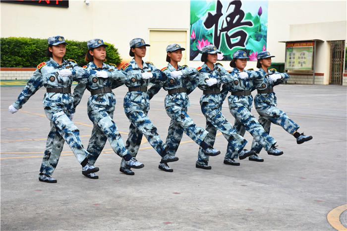 首先進行的是方陣表演,在指揮員剛勁有力的口號下,同學們精神抖擻、斗志昂揚,以班級順序依次迎接檢閱,展示訓練成果。