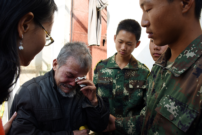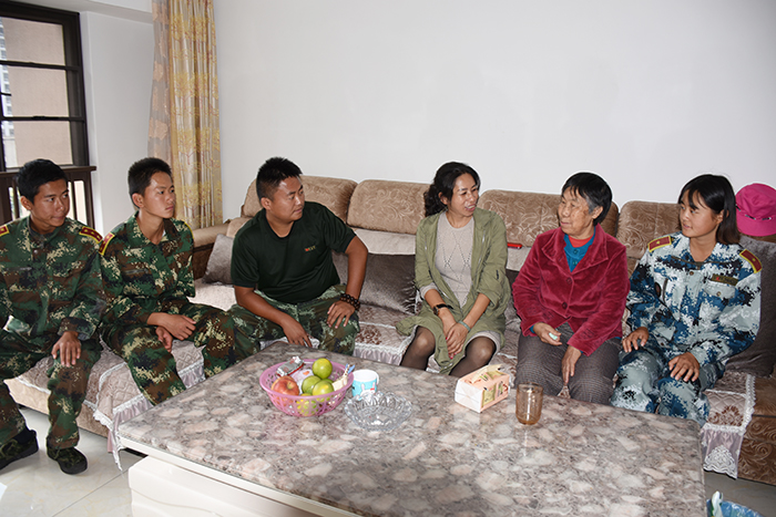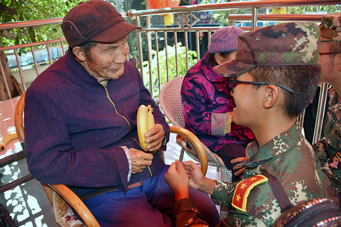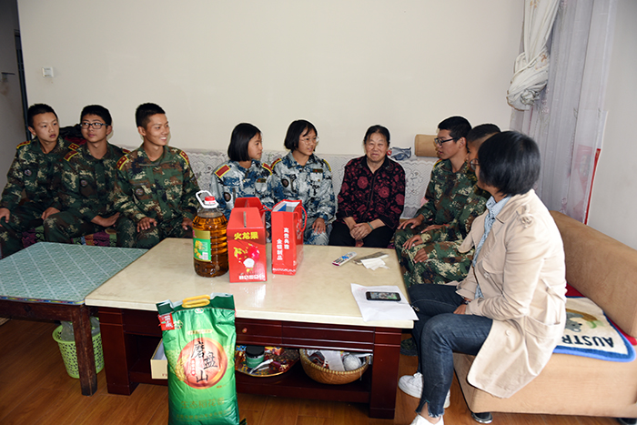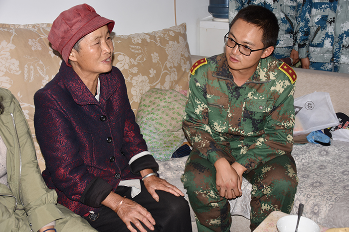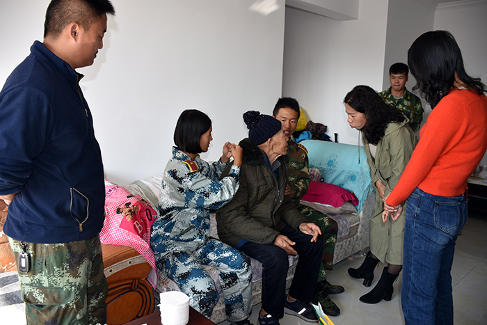 21位老人中,年齡從60歲到100歲之間不等,當(dāng)我們敲開了一戶戶老人的家門,送上生活用品,和他們噓寒問暖,為他們捶背揉肩時,小小的舉動卻像大大的太陽溫暖著老人們的心。但在一次次的近距離接觸中,每家每戶不同的境遇卻一次次撞擊著我們的心扉。有的因為兒女孝順而安享晚年;有的因為夫妻一生相守很短,卻要用余生懷念的憂傷落寞;有的因為體弱多病一個人在家的孤寂......跟著老人們的不同境遇,聆聽老人們講述的故事,我們的心里或艷陽高照,或大雨傾盆。但不論生活如何艱辛,老人們樂觀、堅韌的品格給我們留下的印象卻是最深刻的。