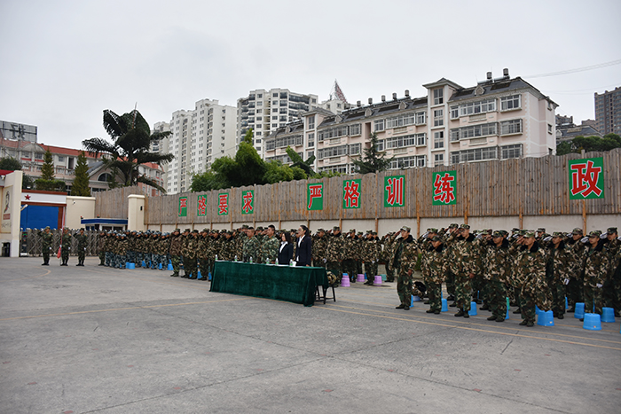 隨后,各方隊在教官的指揮下進行了分列式、應急棍、匕首操、擒敵拳、手語操、舞蹈等表演。同學們整齊的隊伍、精準的動作、昂揚的士氣、嘹亮的軍歌、優(yōu)美的旋律、燃燒的激情贏得了陣陣掌聲。