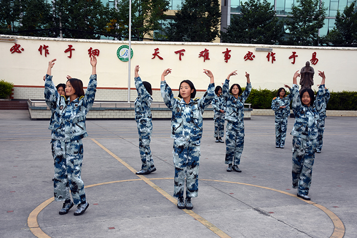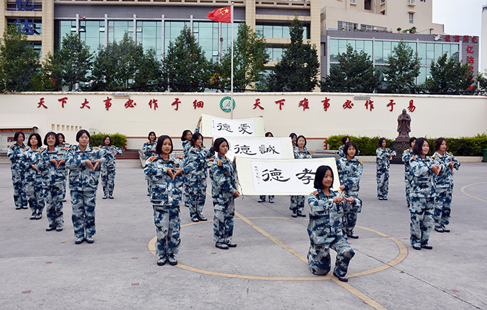分列式的同學們步伐鏗鏘、隊形整齊、口號嘹亮、自信昂揚,展現(xiàn)了良好的精神風貌;擒敵拳方陣的同學們也毫不遜色,剛勁有力的踢腳勾拳,嫻熟連貫的軍體動作,展現(xiàn)了頑強拼搏和勇做時代弄潮兒的決心;女生方隊的手語操《三德歌》,更是把孝德、誠德、愛德的中華民族優(yōu)秀傳統(tǒng)美德表現(xiàn)得淋漓盡致。大家不禁心潮澎湃,日常的苦與累,值!