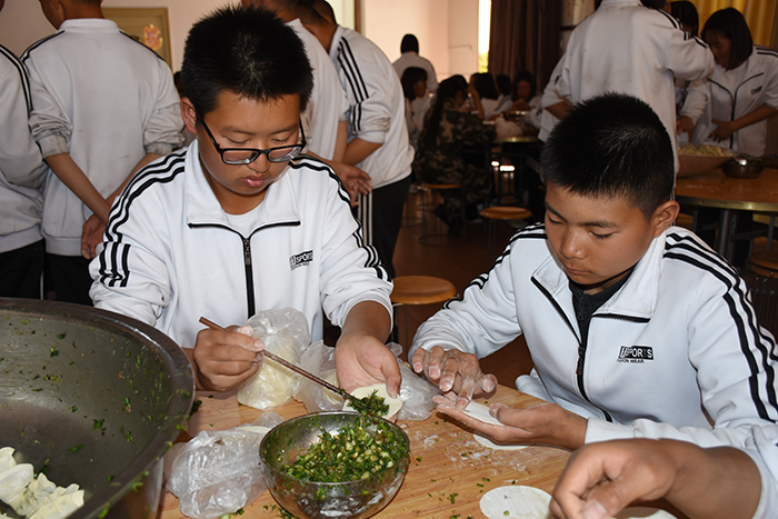 好孩子學(xué)校師生包餃子過新春