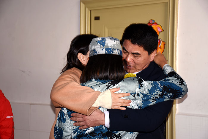 在溫情的音樂聲中,當路航同學轉身看到一大家人站到自己的身后時,立馬從隊列中飛奔到媽媽懷里,抱著媽媽放聲大哭。她沒想到那么多親人來接自己,就連年邁的姥姥、姥爺,還有年少的妹妹等不顧舟車勞頓,大老遠趕來!在和親人的久違擁抱中,她的眼淚像斷了線的珠子一直不停地往下掉,一個勁地說著“對不起,我錯了,我好想你們!”全校師生都為之動情,眼里都泛起了淚花!
