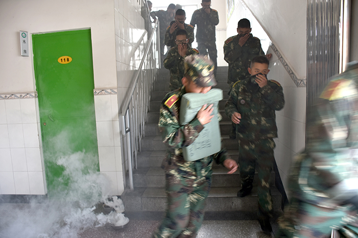 隨著毛副校長(zhǎng)“防震減災(zāi)應(yīng)急疏散演練開始”的一聲令下,“地震警報(bào)”信號(hào)立即響起,學(xué)校迅速啟動(dòng)避震應(yīng)急機(jī)制,學(xué)生們?cè)诟靼嗬蠋煹慕M織下,迅速抱頭,有序地聽從樓層負(fù)責(zé)人指揮,按指定路線“逃生”,疏散到安全區(qū)域。避震演練結(jié)束,校園內(nèi)火警模擬信號(hào)又隨即響起,學(xué)校消防疏散應(yīng)急機(jī)制迅速啟動(dòng)。學(xué)生們用枕頭、帽子或手袖捂住口鼻,彎著腰迅速撤離到安全區(qū)域。