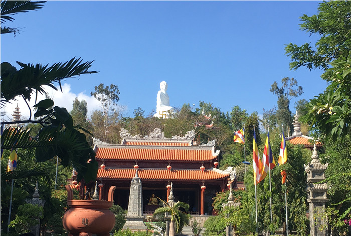 11日清晨,伴著金色的陽(yáng)光、新鮮的空氣,新的一天拉開(kāi)帷幕;蛟S,剛來(lái)芽莊時(shí),就會(huì)發(fā)現(xiàn),在芽莊市區(qū)任何地方都能看見(jiàn)一尊24米高的白色大佛,這便是龍山寺了。寺中的大佛安坐于蓮花之上,坐臥山巔,好似在俯視眾生的歡樂(lè)與煩憂,讓人在佛光之間感悟山海奇跡。注視著當(dāng)?shù)匦疟娤囟\(chéng)禮佛的場(chǎng)景,多少會(huì)讓人的內(nèi)心能夠平靜下來(lái)。