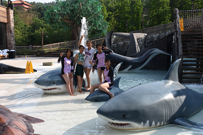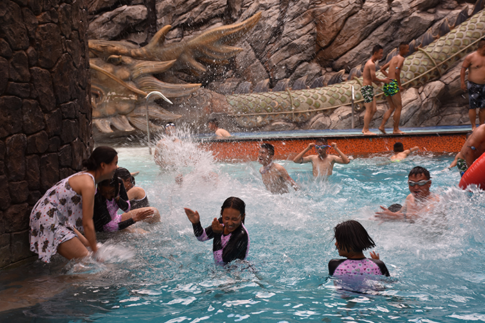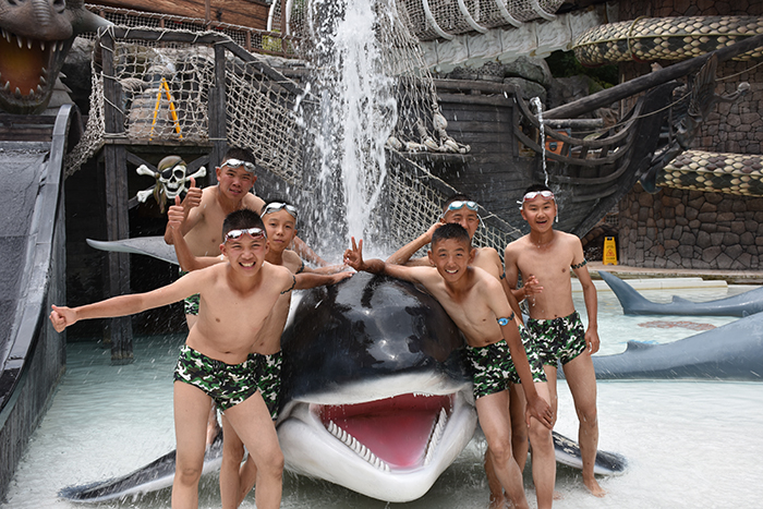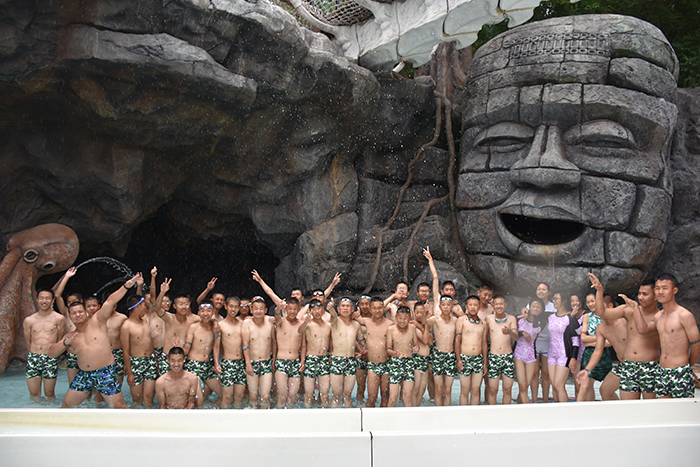 刺激項目體驗結束后,差不多已是傍晚,孩子們成群結隊地到各種特色功能浴中一一享受。一入池中,大家便遙想起唐朝佳人楊貴妃溫湯美容的故事來,更何況,溫泉中設有薄荷、牛奶、鮮花、檸檬等養(yǎng)顏潤膚浴,這是對當代人的恩寵,會令楊貴妃自嘆不如,去責怨唐玄宗白當了一世皇帝,倒不如去做安寧的普通市民,可美美享受森林溫泉的美容浴。親親魚療池中,魚兒親密接觸腳掌的酥癢,讓孩子們不時咯咯地笑出聲來,牛奶池、玫瑰池、中草藥池等池中,更是留下了孩子們無數的歡聲笑語......有的池子本來容納不下太多人,但孩子們就是喜歡擠在一起,嬉戲調侃,不時擺拍留影,讓隔著屏幕看照片的人,都能感受到這個大家庭別樣的溫暖。