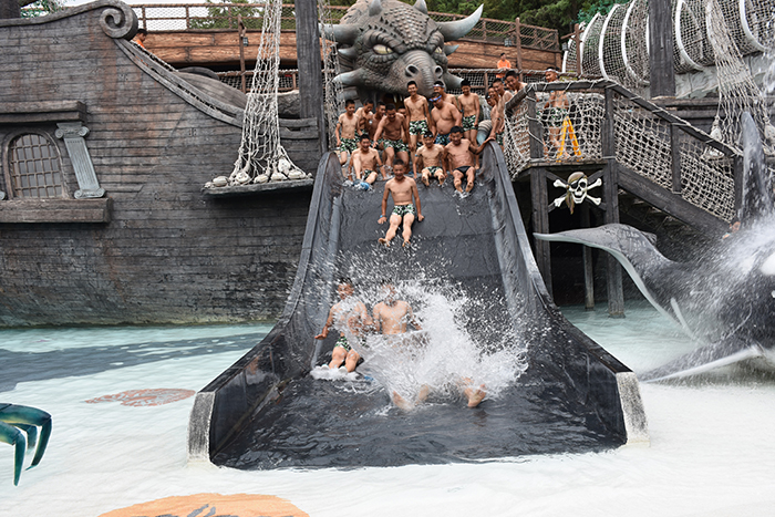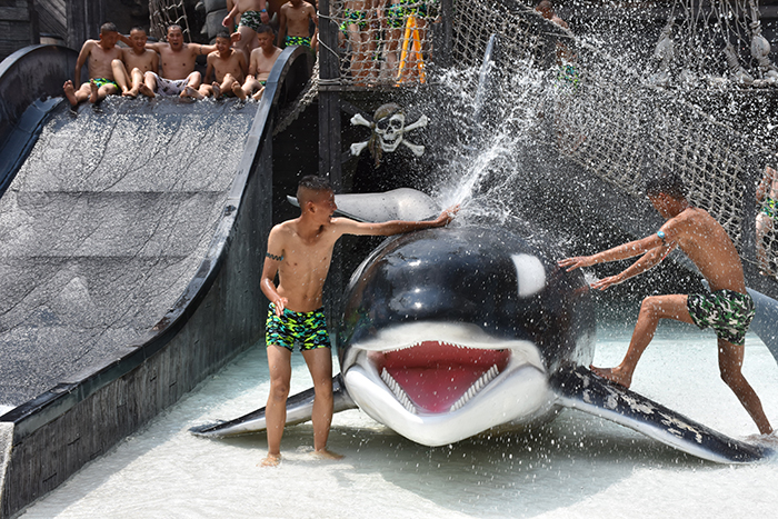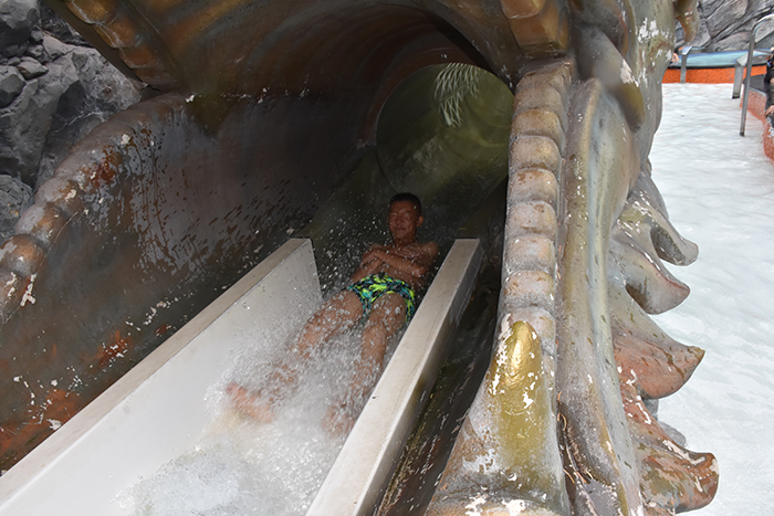 泳池中玩累了,孩子們稍作休息,便又元氣滿滿地開始了各種驚險刺激的水上項目挑戰(zhàn)。在湍急的出水口,在急速滑下而濺起的浪花中,孩子們開懷大笑又有些驚險的表情被記錄了一次又一次。同一個項目,一遍又一遍玩耍的熱情,一次又一次開心的尖叫,讓我們感受到了孩子們火一樣的青春。