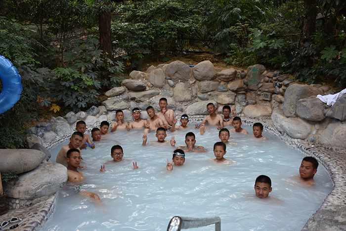 28日午飯后,第一批孩子在老師的帶領下打了頭陣,先行到達溫泉感受清幽的森林、婉轉的鳥鳴、林間的漫步、水中的SPA.....