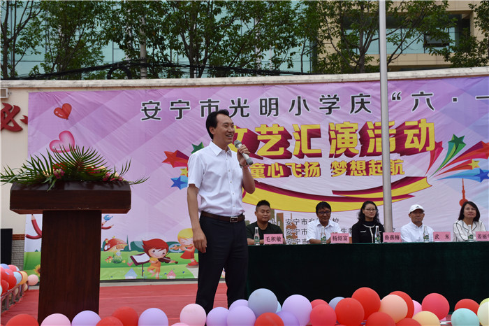2019年5月31日上午,安寧市光明教育集團(tuán)慶“六•一”兒童節(jié)活動(dòng)在好孩子學(xué)校隆重舉行!傲•一”是孩子們的節(jié)日,這是一個(gè)充滿希望而又歡樂(lè)的季節(jié),讓孩子們度過(guò)一個(gè)歡快而有紀(jì)念意義的節(jié)日是非常有必要的。為此,安寧市光明學(xué)校、東湖小學(xué)、童緣幼兒園、好孩子學(xué)校與安寧市光明社區(qū)、柳樹(shù)社區(qū)、武家莊社區(qū)等單位聯(lián)合舉辦“童心飛揚(yáng),夢(mèng)想起航”為主題的大型文藝匯演活動(dòng)。家長(zhǎng)、老師和小朋友們滿懷喜悅,800余人齊聚一堂,歡度這個(gè)童年的盛會(huì)。