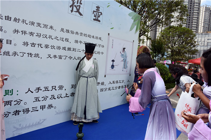 表演結(jié)束后,同學(xué)們還饒有興致地到遙岑樓書院參觀,臭美留影。隨后又興致勃勃地參加了 “旱地龍舟、投壺、漢服體驗”等多個端午主題游園游戲。孩子們玩得十分開心,每個游戲都全情投入,贏得了不少獎券,兌獎時,幸福難以言表;顒蛹染邐蕵沸,又更深入地踐行了時代文明新風(fēng),弘揚了中華傳統(tǒng)文化。
