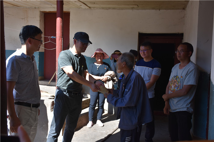 捐贈(zèng)結(jié)束,盡管天氣特別炎熱,氣溫高達(dá)39攝氏度,但大家顧不上休息,在村主任的帶領(lǐng)下,頂著高溫徒步來到細(xì)柞村,走訪看望貧困戶,每到一戶,師生們都與其促膝談心,噓寒問暖,詳細(xì)了解他們的家庭收入、生活住房情況等,同時(shí)給貧困戶送去衣物和捐款。受贈(zèng)的樸實(shí)老人接過沉甸甸的捐贈(zèng)款,感動(dòng)不已,倍感溫暖。