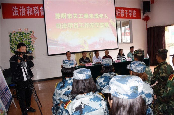 活動(dòng)開(kāi)始,趙主任首先就未成年人司法項(xiàng)目工作在預(yù)防青少年犯罪和青少年觸法權(quán)益維護(hù)工作中的重要性,以及政府在開(kāi)展未成年人司法保護(hù)工作中的努力和成效,向大會(huì)作了精彩致辭。隨后,趙主任還對(duì)孩子們作了殷切勉勵(lì):“這是我第四次來(lái)好孩子學(xué)校,雖然每一次來(lái)基本都是新面孔,但每一次來(lái)給我的印象都很深,很感動(dòng)。我曾是一名軍人,孩子們現(xiàn)在端正的坐姿、整齊的鼓掌以及良好的精神面貌,都讓我無(wú)比的自豪和欣慰,你們都是好孩子,出去也會(huì)是一個(gè)好兵。希望孩子們珍惜好人生的經(jīng)歷,珍惜好在好孩子的這段時(shí)光,努力提升自己,樹(shù)立遠(yuǎn)大目標(biāo),將來(lái)做一個(gè)德才兼?zhèn)涞娜!?br style="font-family: ;"> 隨后,趙主任一行在我校魯植校長(zhǎng)的陪同下,深入學(xué)校教學(xué)樓、宿舍樓等實(shí)地查看了校園環(huán)境,并在多媒體教室觀看了學(xué)校教學(xué)活動(dòng)短片。其間,魯校長(zhǎng)向趙主任詳細(xì)匯報(bào)了學(xué)校近期的各項(xiàng)教育教學(xué)工作開(kāi)展情況。聽(tīng)后,趙主任對(duì)我校的各項(xiàng)工作給予了高度肯定,尤其是夸贊學(xué)校法治宣傳教育開(kāi)展得有聲有色,每年都有不一樣的新內(nèi)容呈現(xiàn)出來(lái),無(wú)愧于“昆明市青少年法治教育基地”這個(gè)光榮稱號(hào)。