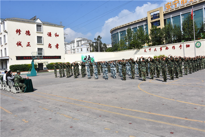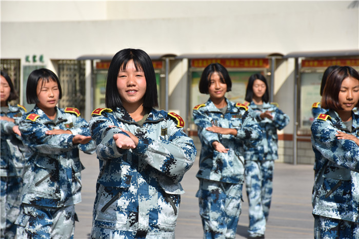 之后的《匕首操》一招一式,鏗鏘有力,干凈利落的動作,勢如破竹的氣勢,拳拳生風展雄姿,好不瀟灑。女兵操《平凡之路》特色表演,同學們也樣樣在行。陽剛堅毅的少年兒郎,英姿颯爽的鏗鏘玫瑰,剛?cè)岵嗟靡嬲,讓我們看到了孩子們在闊步前行中綻放出的最美的模樣。老師們也大展身手,表演的《盾牌操》舉手投足虎虎生風,盡顯豪氣方剛,精彩的表演贏得師生們熱烈的掌聲。