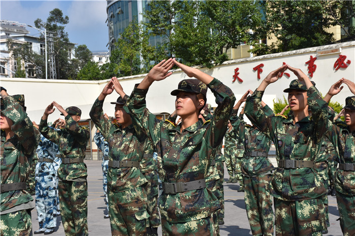 天有三寶“日月星”,人有三寶“精氣神”。接下來的軍訓(xùn)匯報演出精彩紛呈,各方隊先后向我們展示了他們的訓(xùn)練成果。男女方隊《單兵隊列動作》著眼于報數(shù)、整理著裝、步法行進與變換、敬禮禮畢等內(nèi)容,同學們精神飽滿、著裝規(guī)范、令行禁止。嘹亮的口號、整齊的步伐、有力的靠腳、標準的敬禮,無不展現(xiàn)了同學們“站、立、行”的隊列規(guī)范和良好的精神風貌。