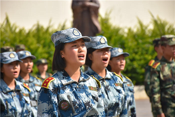 上午九點半,國旗護衛(wèi)隊身姿挺拔,氣宇軒昂護送國旗,在全場師生的注視下,鮮艷的五星紅旗在莊嚴的國歌聲中冉冉升起,軍訓(xùn)匯演也就此拉開序幕。