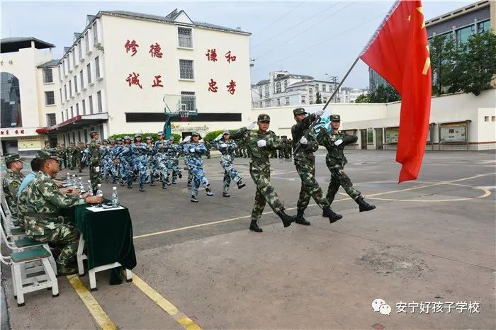國旗手伴著慷慨激揚的國歌,邁著堅定的步伐入場,在全場師生的注視下,鮮艷的五星紅旗冉冉升起,匯演也正式拉開帷幕。隨后進行了迎八一軍旗儀式。緊接著,同學們分為三個方隊,伴著洪亮的《中國人民解放軍分列式進行曲》,個個精神抖擻,步伐整齊一致,口號嘹亮有力,英姿颯爽地依次走過主席臺接受檢閱。