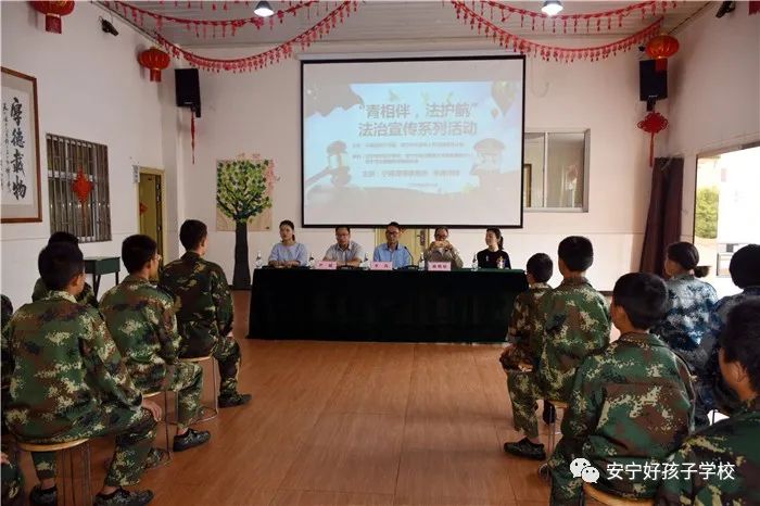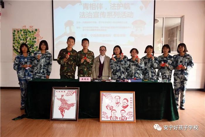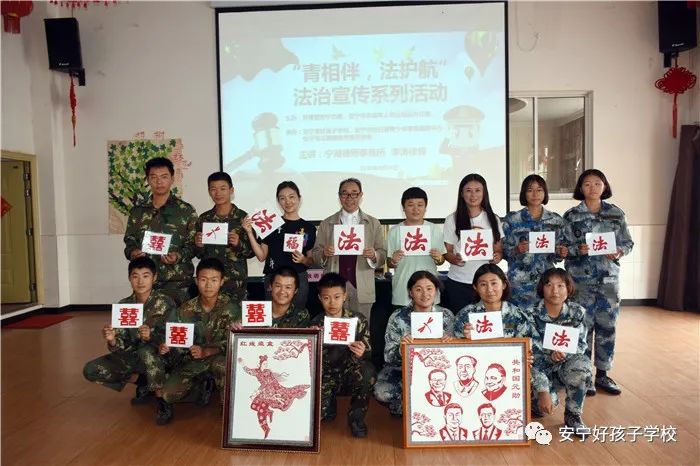 2020年8月24日上午,由共青團(tuán)安寧市委、安寧市未司辦主辦,安寧市向日葵青少年事務(wù)服務(wù)中心、安寧市志愿服務(wù)發(fā)展促進(jìn)會及安寧好孩子學(xué)校承辦的“青相伴,法護(hù)航”法治宣傳系列活動在我校舉行。安寧市向日葵青少年事務(wù)服務(wù)中心主任李曼麗,安寧市非物質(zhì)文化遺產(chǎn)剪紙傳承人耿明府,安寧市志愿服務(wù)發(fā)展促進(jìn)會會長、向日葵青少年事務(wù)服務(wù)中心副主任李佳妮,安寧市未成年司法項目專干萬瑩,寧湖律師事務(wù)所李濤律師等領(lǐng)導(dǎo)一行5人出席了本次活動。