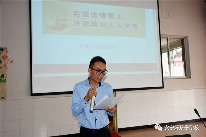 隨后,法制講座在寧湖律師事務(wù)所李濤律師的主講中拉開序幕。李律師以青少年在校期間應(yīng)知應(yīng)會的基本法律常識為重點(diǎn),從“你身邊所熟知的法律”講起,結(jié)合學(xué)生的生理、心理、年齡段特點(diǎn)容易誘發(fā)的違法犯罪問題,以真實(shí)、鮮活的典型案例進(jìn)行剖析,舉案說法,警醒同學(xué)們應(yīng)時刻遵守法律,敬畏法律,珍惜自由,珍愛生命,做一個對自己負(fù)責(zé)、對社會負(fù)責(zé)的遵紀(jì)守法的好公民。