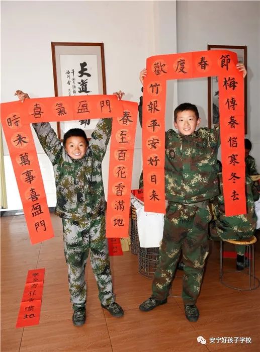 活動(dòng)中,從筆畫到神韻,李老師都悉心指導(dǎo)。孩子們一絲不茍、凝神靜氣、揮毫潑墨,以楷書、隸書、行書等多種書體寫春聯(lián),或端莊秀麗、或渾厚蒼勁、或古樸高雅、或靈動(dòng)瀟灑。孩子們寫著各式各樣的春聯(lián),力求把最好的作品送給家人。1小時(shí)后,一幅幅飽含祝福的春聯(lián)在“小書法家們”手中全部完成。大家熱烈地討論著每副春聯(lián)的蘊(yùn)意,即使到了尾聲,孩子們還意猶未盡,興高采烈的舉著春聯(lián)拍照合影留念,形成了一道亮麗的風(fēng)景線。