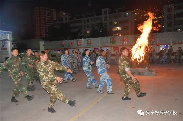 勁歌熱舞后,大家期待已久的篝火晚會正式開始。在極具民族特色的“納西三部曲”、“藏族鍋莊”、“阿細(xì)跳月”音樂聲中,師生們手拉手,一起圍著熊熊燃燒的篝火歡快的唱著、跳著,載歌載舞,即使沒有舞蹈功底,也可以樂在其中,盡情燃燒激情,想必也沒有什么比這個更燃的了。篝火映紅了夜空,也映紅了孩子們的笑臉。