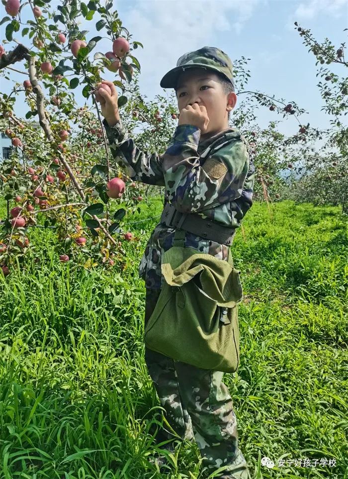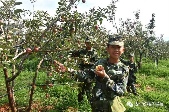 第一站,便來到了綠色而生態(tài)的有機蘋果基地,此基地的蘋果知名度很高,都是來自昭通大山里的優(yōu)質品種。在蘋果成熟的季節(jié),空氣中都彌漫著濃郁的果香,走在通往果園的小路上,孩子們顧不上欣賞美麗的田園風光,興奮地看著兩旁的果園里那又大又紅的蘋果,不禁唇齒生津!巴瑢W們,看好再摘,看中哪個摘哪個,不能浪費”!在老師的一聲號令下,同學們分組有序地鉆進果園采摘起來。烈日當空,清甜脆爽的蘋果無疑是消暑佳品,同學們摘下自己喜歡的又大又紅的蘋果,便像“小饞貓”一樣大快朵頤起來。孩子們滿足地吃著鬧著,這一刻,他們似乎品嘗到的是辛勤勞動的快樂,較之蘋果本身的美味,這份滋味更值得孩子們在人生的每一階段細細品味。