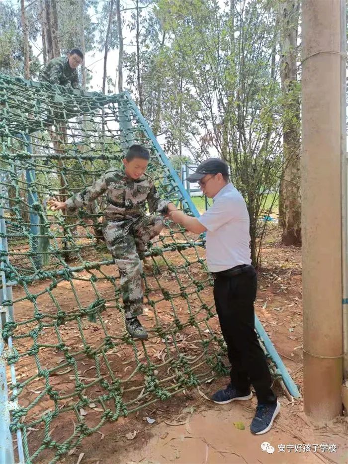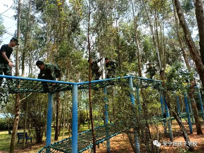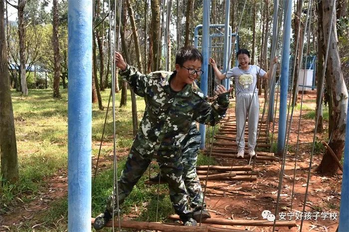 品嘗了特色美味佳肴后,稍作休整,大家便來到了項目多樣的戶外拓展基地,體驗了叢林穿越網繩、蹺蹺板、蕩秋千、蕩橋、攀巖、信任背摔等10余個項目;顒又校⒆觽兪冀K保持飽滿的熱情、高昂的斗志,積極參與,用心體會,努力完成著每一個項目。雖然在挑戰(zhàn)過程中,有的孩子有過膽怯、有過害怕,但在老師的幫助和隊友們響亮的加油打氣聲中,他們沒有退縮、沒有放棄,憑借著頑強的毅力,堅定的信念和團結協(xié)作的精神通過了重重難關考驗。