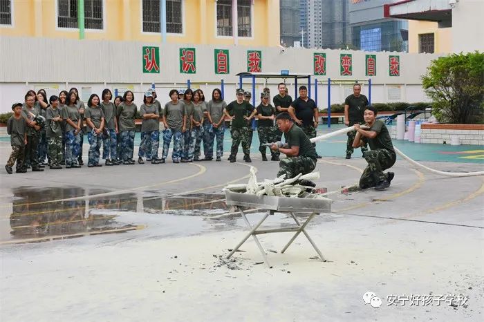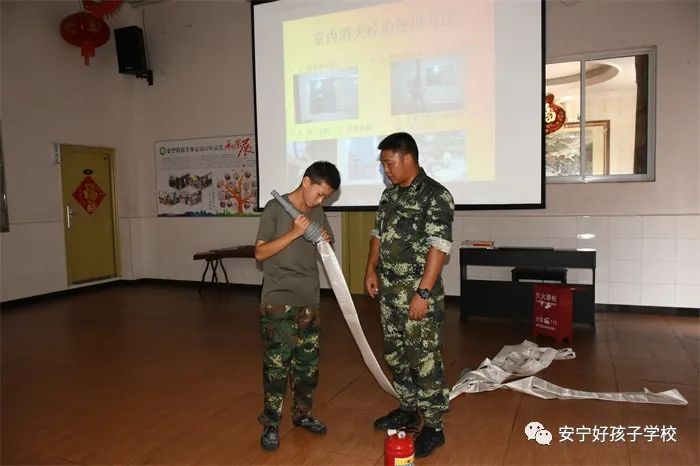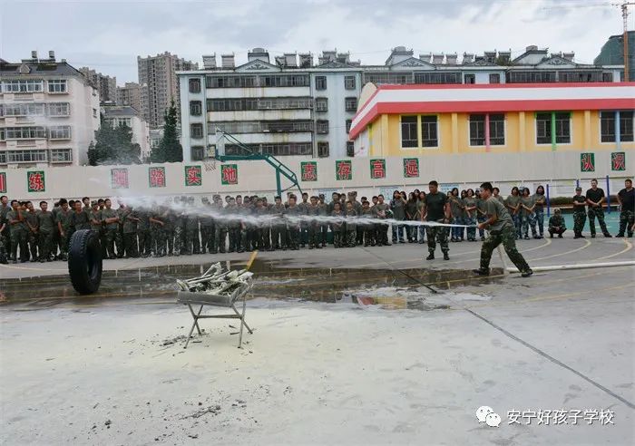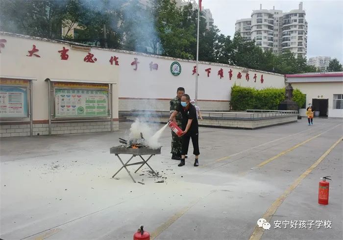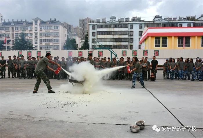 最后,進(jìn)行了撲救演練。操場(chǎng)上的木材點(diǎn)燃后,火苗迅速變成了熊熊大火,老師開(kāi)始現(xiàn)場(chǎng)演示滅火設(shè)備(滅火器、高壓水槍?zhuān)┑氖褂梅椒ǎ⒅笇?dǎo)全部學(xué)生親自操作演練。