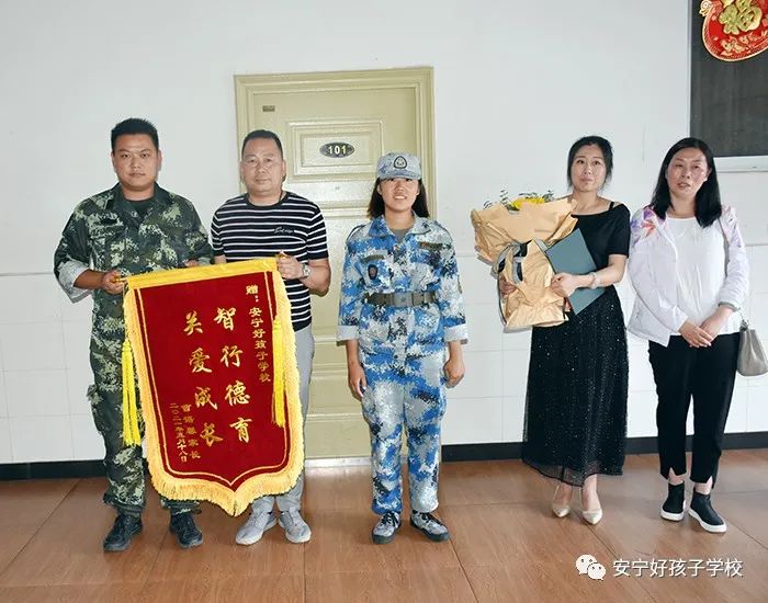 2021年5月20日上午,在我校畢業(yè)生曹語馨的出營儀式上,她的爸爸媽媽將一面繡有“智行德育,關(guān)愛成長”字樣的錦旗贈予學(xué)校,以此感謝學(xué)校對曹語馨的精心培育,我校副校長楊玉峰代表學(xué)校接下了這面沉甸甸的錦旗。