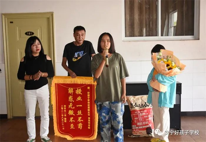 李學(xué)玟的媽媽更是幾度哽咽地說道:“今天看到李學(xué)玟的成長,我很激動(dòng),不知道該說什么好,千言萬語只能說聲謝謝!謝謝老師們把她當(dāng)幼苗一樣的呵護(hù),讓她在這塊肥沃的土壤里盡情成長,讓她的性格變得更加溫潤。孩子們,父母都是愛你們的,不要怪父母把你們送來這里吃苦,你們不在父母身邊的日子,爸爸媽媽無時(shí)無刻不在牽掛著你們,想念著你們。每當(dāng)學(xué)校的公眾號(hào)推出文章,我們都會(huì)認(rèn)真去讀,去尋找你們的身影。我們也是第一次做父母,也在努力改變和你們相處的方式,希望你們也能接受我們的不完美!”