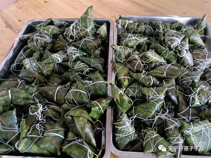 3日上午,學(xué)校餐廳歡聲笑語(yǔ),熱鬧非凡。孩子們?cè)诶蠋煹膸ьI(lǐng)下,熱火朝天地清洗粽葉,隨后,展開(kāi)了如火如荼的包粽子活動(dòng)。在老師的精心指導(dǎo)下,孩子們忙碌地穿梭在一片片翠綠的粽葉間,“一折葉、二盛料、三壓實(shí)、四包裹、五扎繩”......有的孩子包粽子技術(shù)嫻熟,在他們的巧手下,很快一個(gè)個(gè)精美的粽子就誕生了;有的包粽子心切,好不容易包好了粽葉,糯米又漏出來(lái),亦或是裝好米又包好粽葉,但線(xiàn)卻怎么也扎不緊,急得在那里直呼“老師,快來(lái)幫幫我”.......盡管技術(shù)參差不齊,但大家都學(xué)得有模有樣。不一會(huì)兒,一個(gè)個(gè)形態(tài)各異的粽子便躍然桌上。有三角狀的,有牛角型的,還有長(zhǎng)條型、正方形和糖果型的...... 粽子的外面是粽葉,里面是粽餡,一“包”一“容”,呈現(xiàn)給我們的便是“包容”。