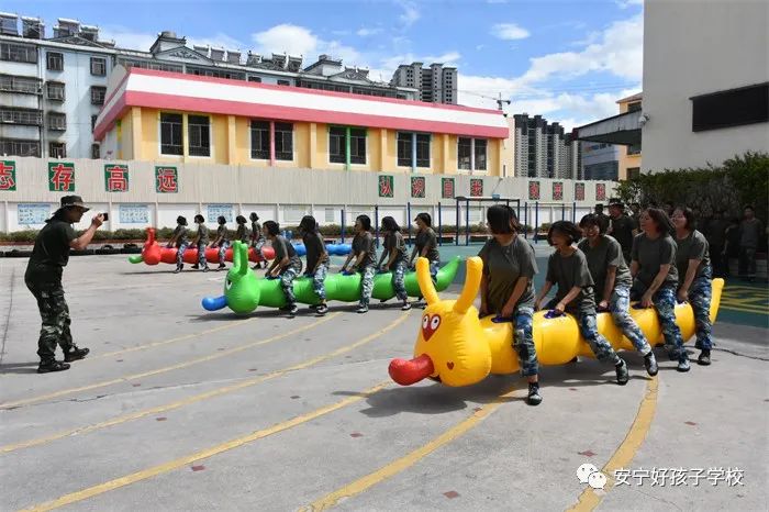 賽龍舟結(jié)束后,同學(xué)們意猶未盡,接著進(jìn)行了“毛毛蟲(chóng)競(jìng)走”。參賽隊(duì)伍8人一組,后面的同學(xué)拉著前面同學(xué)的衣服成一列蹲下前行,用時(shí)最少抵達(dá)終點(diǎn)者勝出。同學(xué)熱情高漲,一邊高唱“團(tuán)結(jié)就是力量”,一邊奮力前行,同心協(xié)力沖向終點(diǎn)。