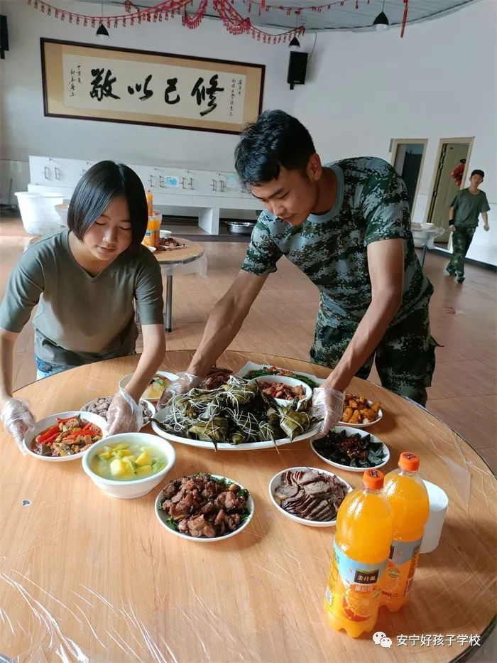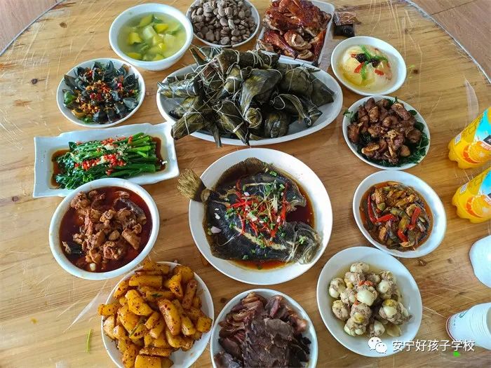 傍晚,一個(gè)個(gè)香氣撲鼻的“粽子”新鮮出爐端上了桌,一桌桌色香味俱全的盛宴便呈現(xiàn)在大家眼前。開(kāi)飯前,尹校長(zhǎng)向全校師生表示節(jié)日的問(wèn)候與祝福,并語(yǔ)重心長(zhǎng)地說(shuō)道:“孩子們,今年的端午節(jié)對(duì)于大家來(lái)說(shuō),一定意義非凡,希望你們?cè)谶@個(gè)轉(zhuǎn)折點(diǎn),好好學(xué)習(xí),感恩自己的父母,做一個(gè)真正的好孩子,做一個(gè)對(duì)社會(huì)有用的人”。聽(tīng)著尹校長(zhǎng)親切又有力量的一番話(huà),孩子們感動(dòng)不已。隨后,在尹校長(zhǎng)“端午節(jié)晚餐現(xiàn)在開(kāi)席”的一聲令下后,大家共同舉杯正式開(kāi)始了晚宴。孩子們一邊吃著豐盛的晚餐,一邊迫不及待地解開(kāi)升騰著熱氣的粽子,心滿(mǎn)意足地品嘗著自己的“作品”,笑容分外甜蜜。席間,尹校長(zhǎng)還親切地走到孩子們中間敬茶祝福。看著教學(xué)中嚴(yán)厲的校長(zhǎng),生活中卻是如此關(guān)切地噓寒問(wèn)暖、和藹可親,像父母,又像兄長(zhǎng),同學(xué)們高興不已!鏡頭下,孩子們不時(shí)向父母老師道祝福,和同學(xué)相共勉。